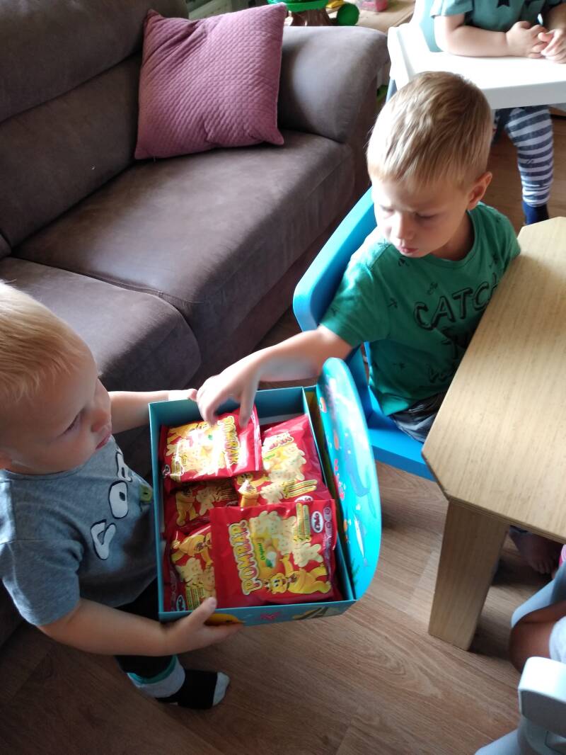 10:00: Met ze alle wat drinken en met een bakje fruit erbij. Daarna gaan we knutselen en mogen ze ook weer spelen.